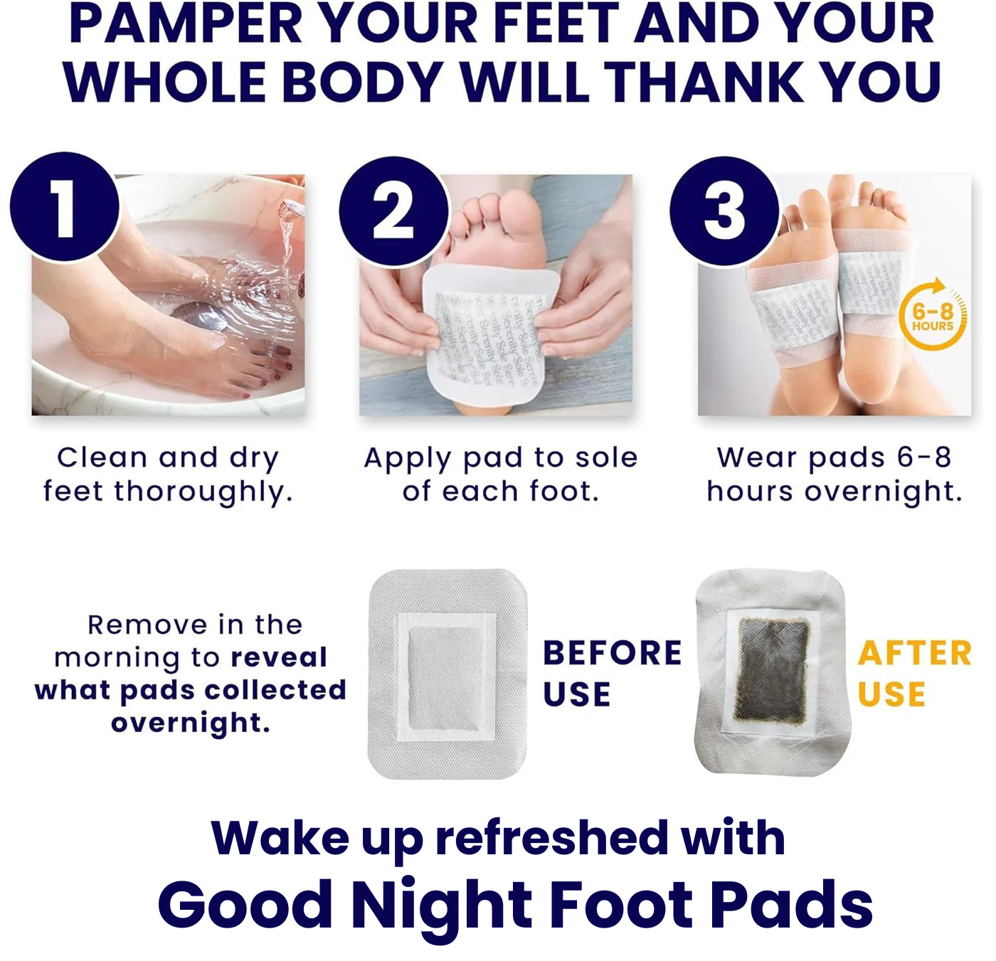 Experience rejuvenation every night with these detox foot pads, designed to promote relaxation and enhance well-being as you sleep, ensuring you wake up feeling refreshed and revitalized.
